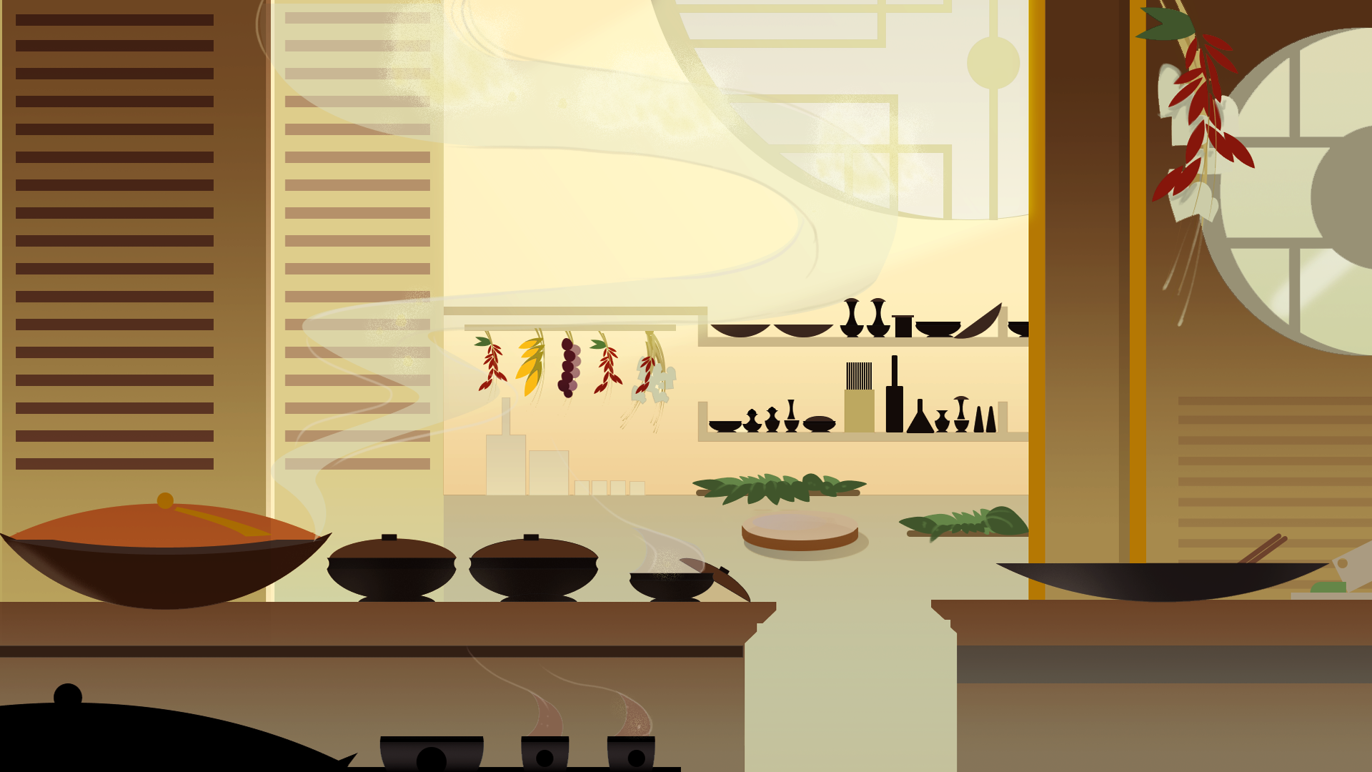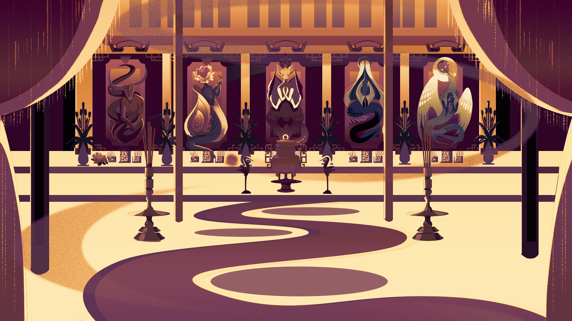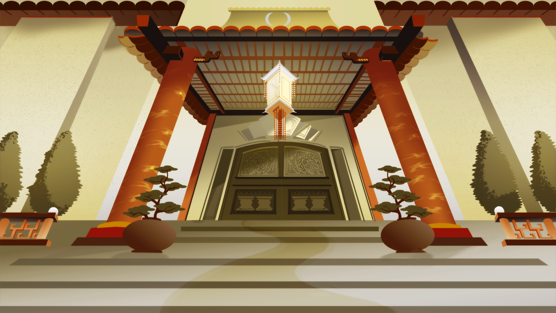 Background of Midheaven: Winds of Ambition heavily inspired by the Southeast Asia's architecture and sculpture, especially Vietnamese shrines, temples and palaces. The background designed with variation in lighting and filter to create different mood and create the feeling of daytime and night.