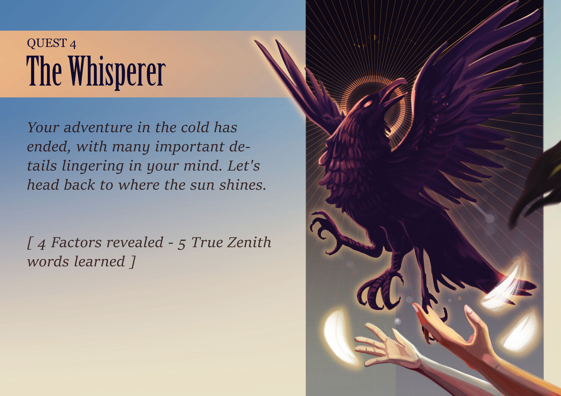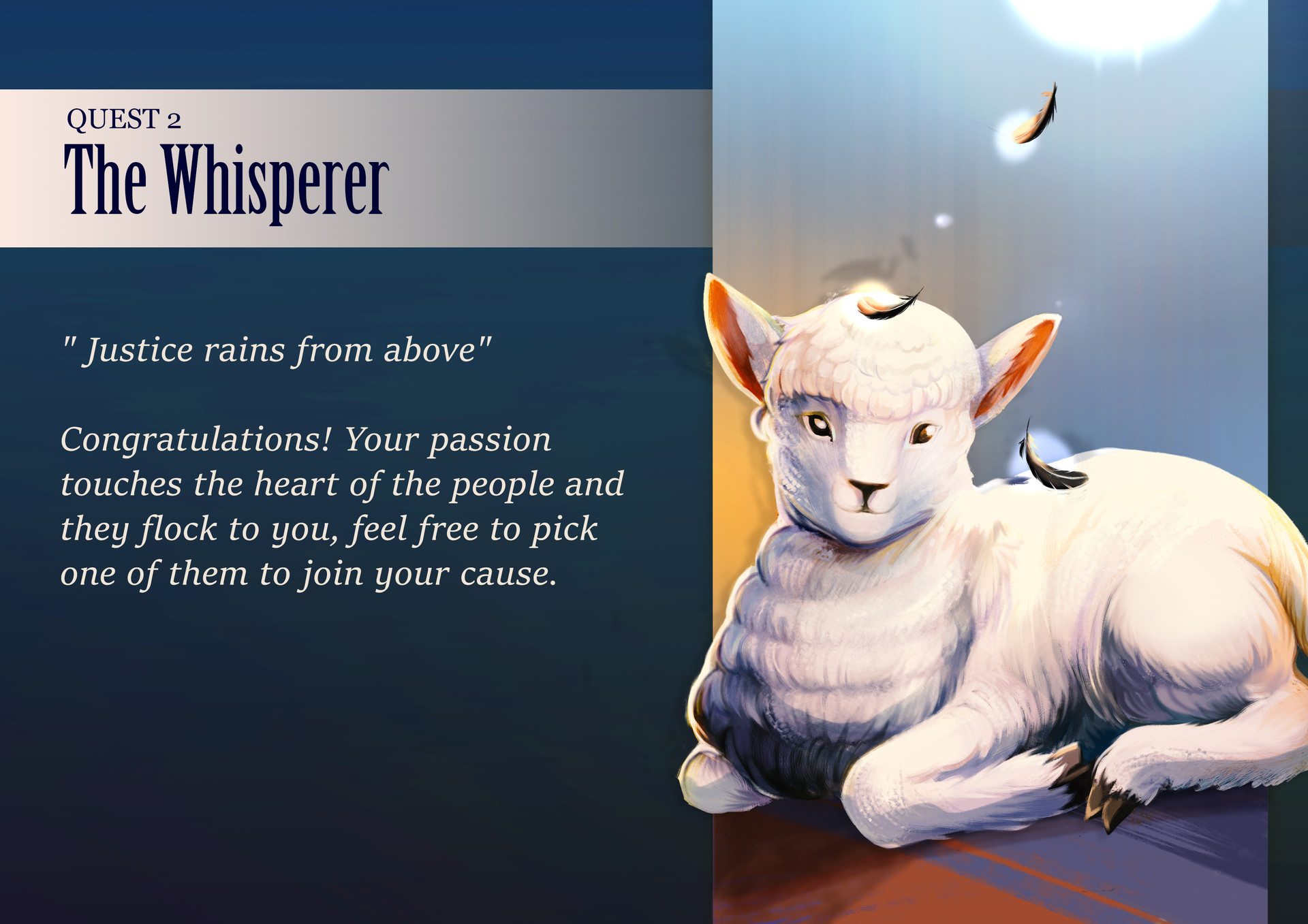 The participants were separated into two opposing teams with separate weekly missions for each team. The Whisperer is designed with a blue, yellow and white color scheme that represents peace and protection. Placed in contrast to the red and black color scheme, symbolizing the blood and thorns of The Cult. Each week, the match results will unlock a week ending card corresponding to the color theme of the winning side.